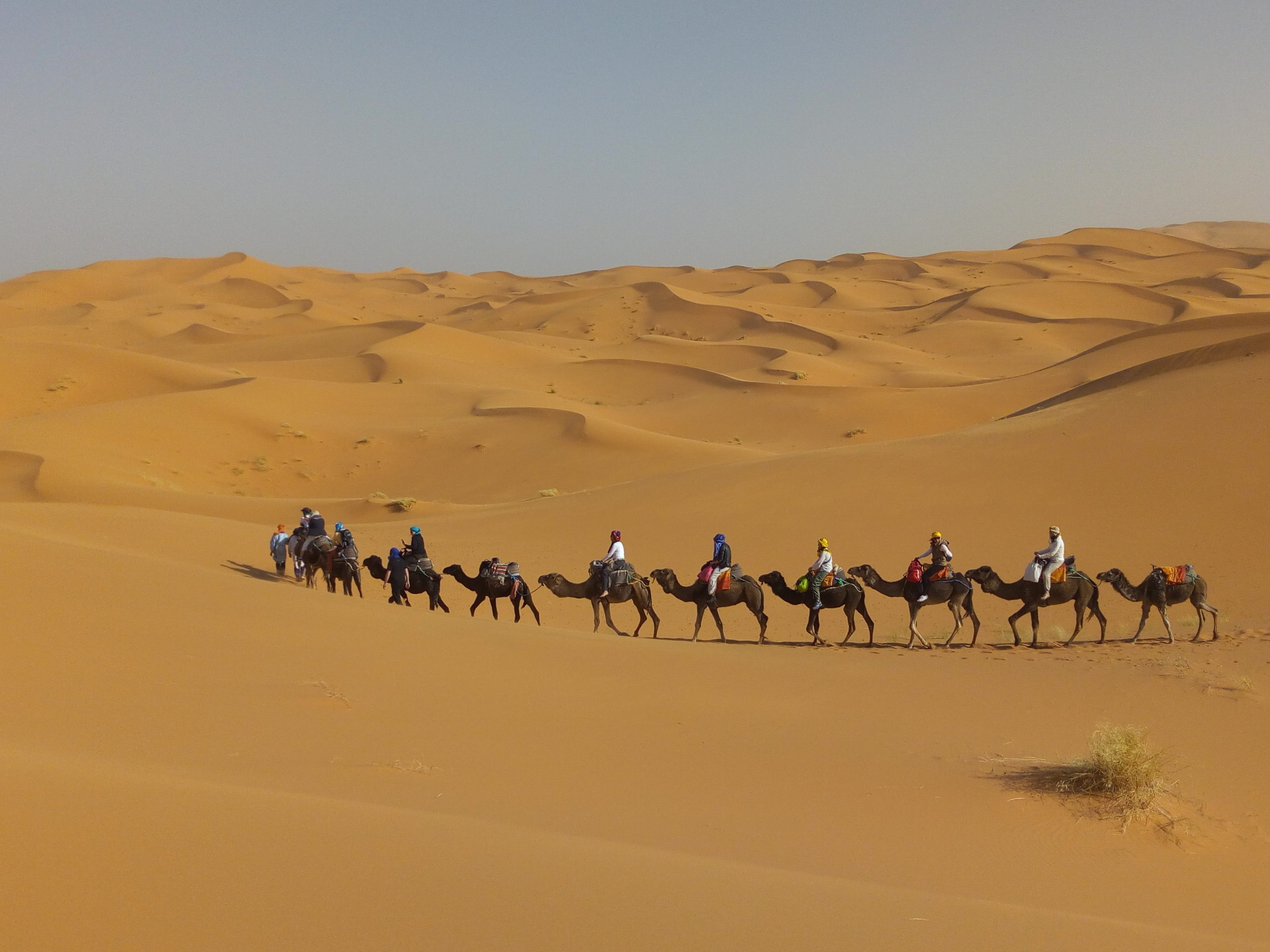 ¡Un viaje al desierto del Sahara es definitivamente una experiencia que todos deberían tener al menos una vez en su vida, es un viaje como ningún otro con paisajes y vistas que la mayoría solo verá en las películas! 1 NOCHE El trekking comenzará a última hora de la tarde alrededor de 2 horas antes del atardecer y lo llevará directamente al corazón de las dunas del desierto. La caminata dura aproximadamente una hora y media, por lo que tendrá la oportunidad de ver una de las puestas de sol más hermosas que Marruecos tiene para ofrecer. Los camellos estarán llenos de comida y todo lo que necesitaremos para la noche, también es posible traer sandboards y esquís si esta es una actividad que le interesa. Siendo bereberes, podemos ofrecerle la noche más tradicional posible en el desierto con auténtica comida, música y grandes carpas para acomodar a todos. Recomendamos levantarse antes de que amanezca para ver un magnífico amanecer a través de las dunas antes de regresar al pueblo donde nos bañaremos y tomaremos un delicioso desayuno.